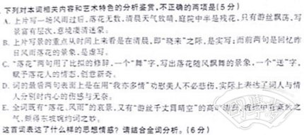 1. A3分,D2分(A “游丝”指的是天上的云丝,意境不是凄清迷蒙。D.“实际上表达了词人与情人分别时内心的伤感与无奈”错。)
